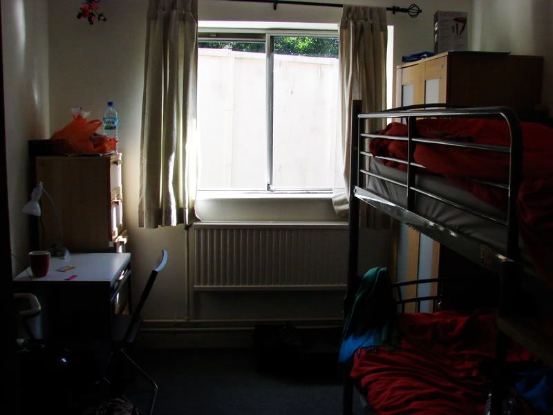 Er zijn in totaal drie residentiegebouwen. Het mijne heet Blackwell. Ik heb een kamer op de begane grond. Mijn roommate heet Paloma, ze komt uit Spanje, is 21 en erg lief. Foto volgt. Haar laptop is minder lief, maar ik denk dat we het ding binnenkort toch wel uit het raam zullen gooien. Afgezien van voornoemde kamergenoot, gevat het hok ook nog een wastafel, een kledingkast, een kast met laden waarin ik onder andere mijn etensvoorraad bewaar - ik ben zelf ook net een eekhoorn soms - en een tafeltje waaraan ik mijn huiswerk maak. Oh, en ik zou bijna het bed vergeten. Het onderste is van mij. Als ik me omdraai kraakt het alsof… Nee, ik ga me niet aan een vergelijking wagen hier.