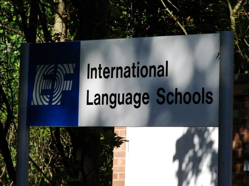 Het schoolterrein van EF ligt aan een hobbelig zijstraatje van een vrij grote weg. Als je over het parkeerterreintje bent gelopen en langs de tafeltennistafel, kom je bij de poort. Daarachter ligt een grasveldje met bomen, waaraan eekhoorns groeien. Eromheen liggen het schoolgebouw, het activiteitengebouw en de residentiegebouwen. Het activiteitengebouw heeft, zoals ik al zei, ook een fitnessruimte, maar die is nog niet open. De lounge gelukkig wel. Daar genieten we met volle teugen van, met name vanwege de pooltafel. Er moet alleen nog een oplossing gevonden voor de grote hoeveelheden Spanjaarden (te luidruchtig) en Aziaten (te goed in poolen). Verder hebben we nog het cafetaria, waar we ons eten krijgen (ontbijt en diner, wisselende kwaliteit).